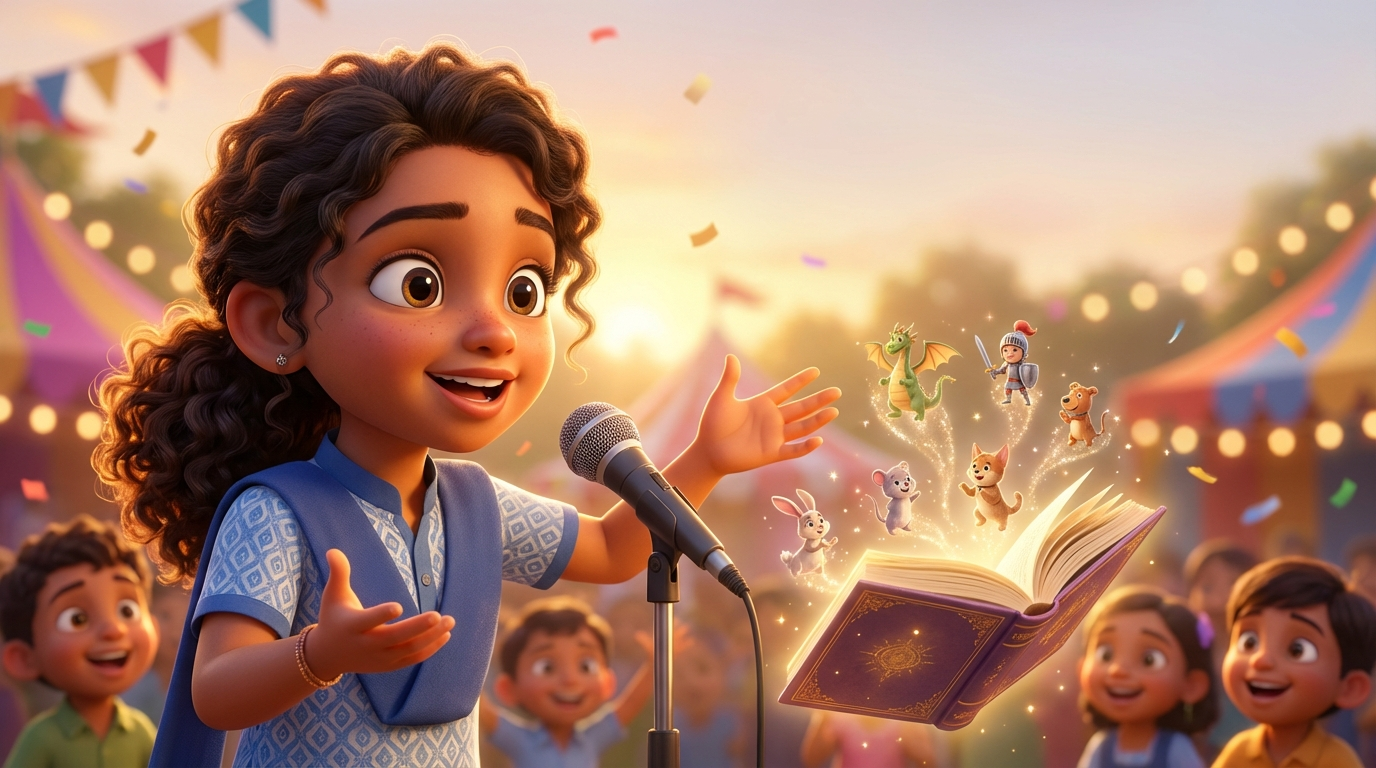 Build confidence and expression as children bring meaningful stories to life in Tamil and English.